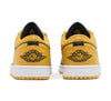 Como todo Air Jordan 1 Low, o modelo traz o logo Jumpman bordado na língua e o clássico Wings Logo estampado na parte traseira do calcanhar. O Swoosh lateral, em preto, se destaca contra o amarelo ocre, reforçando a identidade da marca e sua herança no mundo dos sneakers.
