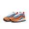 Design arrojado e energético: O Nike Air Max 97 'Orange' - Running Club se destaca pela sua cor vibrante laranja, que cobre grande parte da parte superior do tênis, evocando uma sensação de velocidade e dinamismo, como se fosse um reflexo do movimento rápido e constante dos corredores. Detalhes em preto e branco contrastam com o tom laranja, criando uma estética poderosa e moderna. O design das camadas onduladas na parte superior do modelo segue a linha fluida e aerodinâmica do Air Max 97, com as cores vibrantes reforçando o tema atlético e de performance.