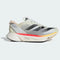 Um dos tênis de elite da linha Adizero, oferece design para performance de alto nível. O cabedal leva materiais reciclados, alinhado aos esforços da Adidas na redução de plástico virgem .